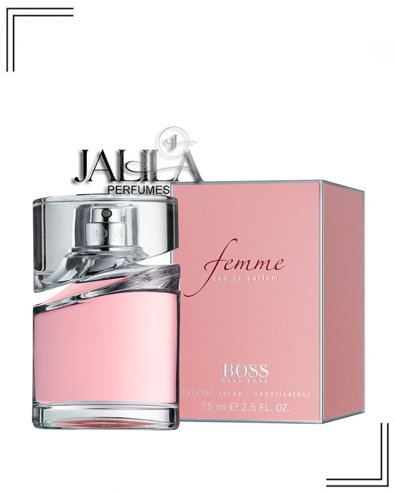 HUGO BOSS FEMME FOR WOMEN EDP 75 ML BD13.850 BD33.000 58%OFF Hugo Boss Femme is a Floral Fruity fragrance for women. Femme was launched in 2006. Top notes:- Freesia, Tangerine and Black Currant. Middle notes:- Bulgarian Rose, Lily and Jasmine. Base notes:- Lemon Tree, Apricot and Amber. Add to cart PRODUCT DESCRIPTION main accords floral, white floral, citrus, rose, fruity, soft spicy, animalic. Top Notes Freesia Tangerine Black Currant Middle Notes Bulgarian Rose Lily Jasmine Base Notes Lemon Tree Apricot Amber HUGO BOSS FEMME FOR WOMEN, HUGO BOSS FEMME EDP, HUGO BOSS