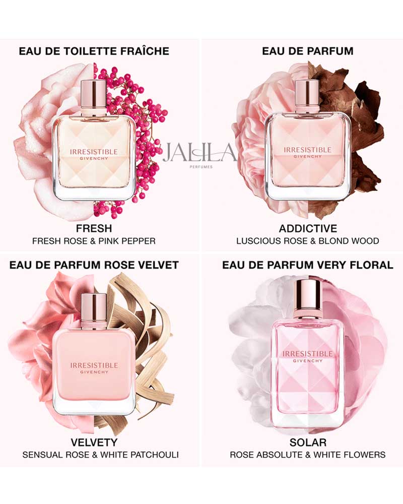 GIVENCHY IRRESISTIBLE FOR WOMEN EDT 80 ML BD33.900 BD56.500 40%OFF Givenchy Irrésistible Eau de Toilette is a Floral Fruity fragrance for women. Irrésistible Givenchy Eau de Toilette was launched in 2021. Irrésistible Givenchy Eau de Toilette was created by Fanny Bal, Dominique Ropion and Anne Flipo. Top notes:- Rose Water and Cassis. Middle notes:- Damask Rose and Iris. Base notes:- White Musk and Virginia Cedar. Out of stock PRODUCT DESCRIPTION Givenchy main accords rose, musky, powdery, woody, iris, aromatic, floral, earthy, fruity, green. Top Notes Rose Water Cassis Middle Notes Damask Rose Iris Base Notes White Musk Virginia Cedar GIVENCHY IRRESISTIBLE, GIVENCHY IRRESISTIBLE EDT, GIVENCHY, IRRESISTIBLE EDT