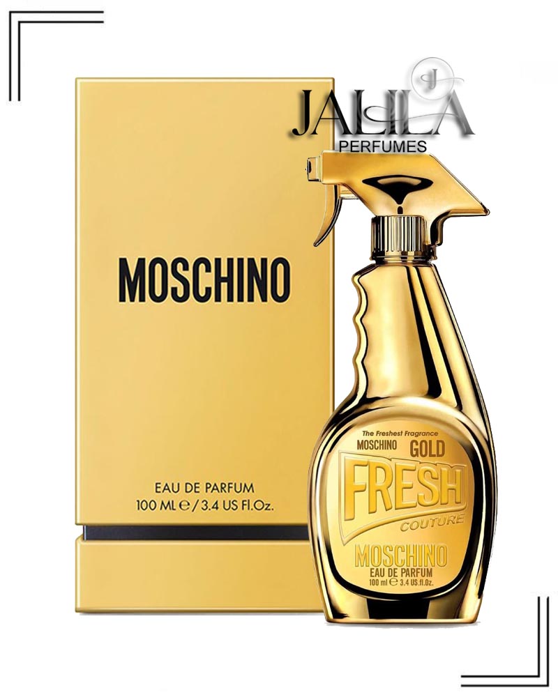 MOSCHINO FRESH COUTURE GOLD FOR WOMEN EDP 100 ML BD16.400 BD33.500 51%OFF Moschino Gold Fresh Couture is a Floral Fruity fragrance for women. Gold Fresh Couture was launched in 2017. Top notes:- Pear, Mango, White Peach, Rhubarb Leaf, Mandarin Orange and Grapefruit. Middle notes:- Orchid, Jasmine and Lily-of-the-Valley. Base notes:- Vanilla, Musk, Akigalawood, Sandalwood and Patchouli. Add to cart PRODUCT DESCRIPTION main accords fruity, sweet, powdery, vanilla, woody, tropical, citrus, green , fresh,aquatic. Top Notes Pear Mango White Peach Rhubarb Leaf Mandarin Orange Grapefruit Middle Notes Orchid Jasmine Lily-of-the-Valley Base Notes Vanilla Musk Akigalawood Sandalwood Patchouli MOSCHINO FRESH COUTURE GOLD, MOSCHINO FRESH COUTURE, MOSCHINO FRESH, MOSCHINO GOLD, MOSCHINO, FRESH COUTURE GOLD