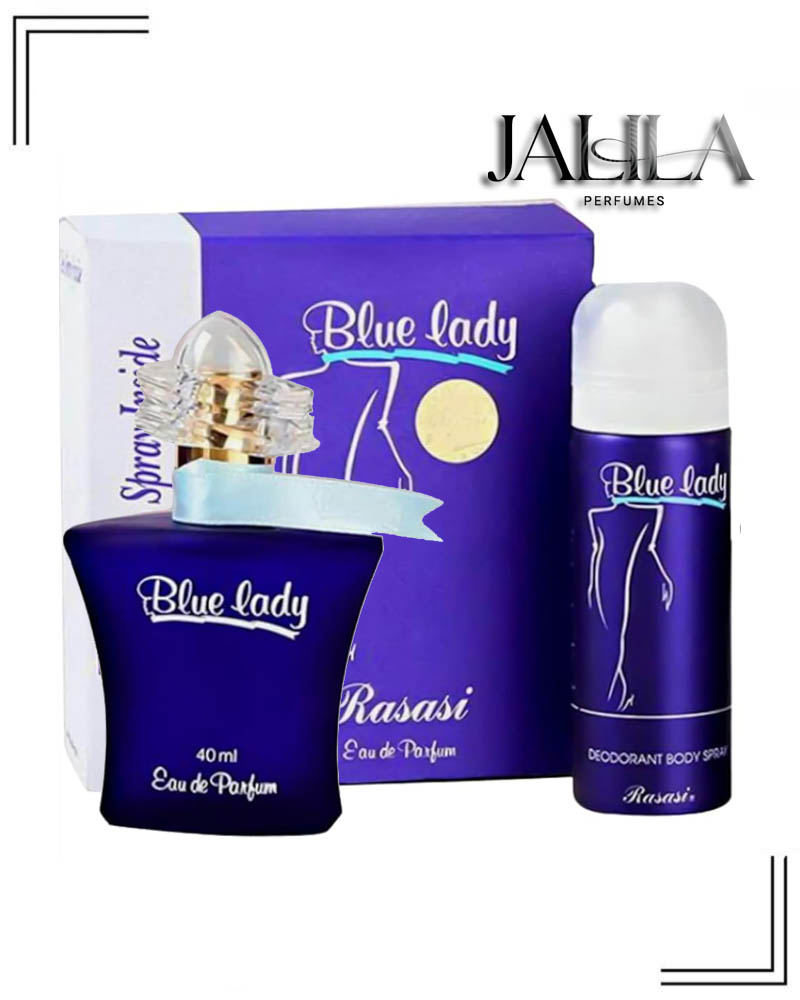 RASASI BLUE LADY FOR WOMEN EDP 40 ML + DEO SPRAY 50 ML BD3.500 Rasasi Blue Lady is a Floral Woody Musk fragrance for women. Top notes:- Tuberose, Ylang-Ylang, African Orange Flower and Violet Leaf. Middle notes:- Jasmine, Plum, Narcissus and Peach. Base notes:- Sandalwood, Vanille, Amber, Musk and Vetyver. Add to cart PRODUCT DESCRIPTION main accords white floral, sweet, yellow floral, fruity, tuberose, woody, powdery, green, animalic. Top Notes Tuberose Ylang-Ylang African Orange Flower Violet Leaf Middle Notes Jasmine Plum Narcissus Peach Base Notes Sandalwood Vanille Amber Musk Vetyver RASASI BLUE LADY, RASASI, RASASI BLUE, BLUE LADY
