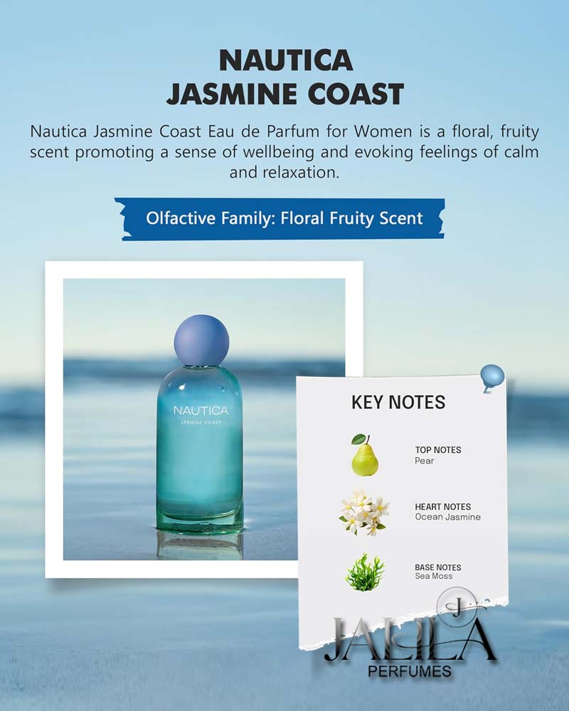 NAUTICA JASMINE COAST FOR UNISEX EDP 100 ML BD10.500 BD15.000 30%OFF Nautica Jasmine Coast is a fragrance for women and men . This is a new fragrance. Jasmine Coast was launched in 2025. Notes:- Violet, Jasmine, Mandarin, Pink Pepper, Pear, Ambergris, Musk and Moss. Add to cart PRODUCT DESCRIPTION main accords violet, white floral, powdery, citrus, fruity, sweet, floral, fresh, soft spicy, musky. Base Notes Violet Jasmine Mandarin Pink Pepper Pear Ambergris Musk Moss NAUTICA JASMINE COAST, NAUTICA JASMINE COAST UNISEX, NAUTICA JASMINE, JASMINE COAST