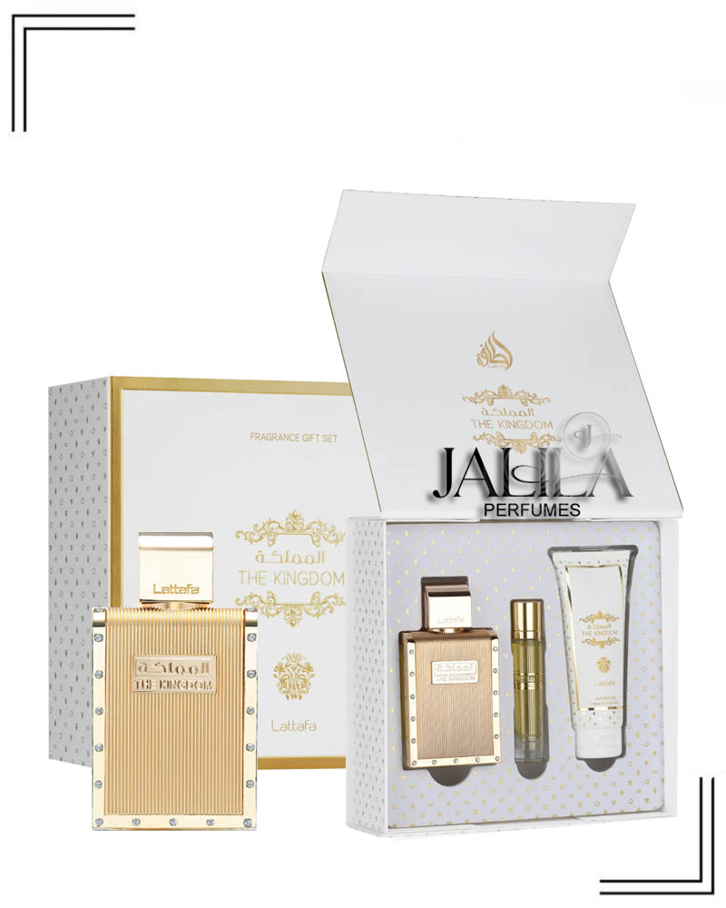 LATTAFA THE KINGDOM FOR MEN EDP 100 ML - GIFT SET BD14.000 BD20.000 30%OFF 1- EDP 100 ML, 2- EDP TRAVEL SPRAY 12 ML, 3- SHOWER GEL 100 ML. - Lattafa The Kingdom For Men Perfumes is a Aromatic fragrance for men. This is a new fragrance. The Kingdom For Men was launched in 2024. Top notes:- Lavender, Mint and Sage. Middle notes:- Vanilla, Tobacco and Orange Blossom. Base notes:- Tonka, Benzoin and Labdanum. Add to cart PRODUCT DESCRIPTION main accords vanilla, aromatic, sweet, amber, lavender, green, fresh spicym, tobacco, herbal, balsamic. Top Notes Lavender Mint Sage Middle Notes Vanilla Tobacco Orange Blossom Base Notes Tonka Benzoin Labdanum LATTAFA THE KINGDOM GIFT SET, LATTAFA GIFT SET, LATTAFA THE KINGDOM FOR MEN
