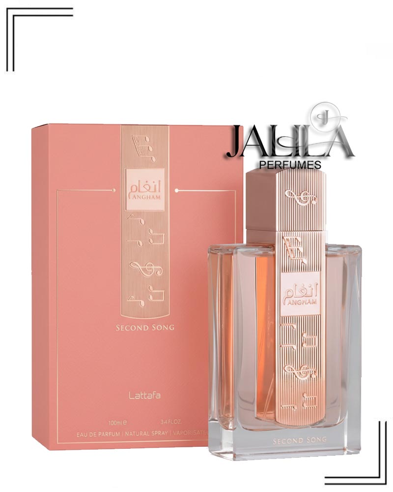 LATTAFA ANGHAM SECOND SONG FOR WOMEN EDP 100 ML BD9.800 BD14.000 30%OFF Lattafa Angham Second Song is a Floral Fruity Gourmand fragrance for women. Angham Second Song was launched in 2026. Top notes:- Pear Blossom and Bergamot. Middle notes:- Peony, Orange Blossom and Praline. Base notes:- Vanilla, Musk, Ambroxan and Tonka. Add to cart PRODUCT DESCRIPTION main accords floral, sweet, fresh, vanilla, musky, white floral, citrus, amber, rose, powdery. Top Notes Pear Blossom Bergamot Middle Notes Peony Orange Blossom Praline Base Notes Vanilla Musk Ambroxan Tonka Lattafa Angham Second Song perfume, Lattafa women fragrance 2026, floral fruity gourmand perfume, sweet feminine fragrance, long lasting ladies perfume.